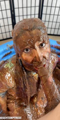 MessyGirlPeyton got lowered into a big vat of warm chocolate pudding by MessyOZ