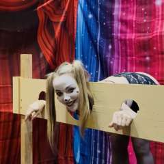 MessyMegan had a pie put on a stool to be sat on by Big Bird the Clown