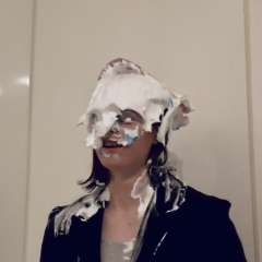 Mucky pup was surprised by Hikari-Studio-Wam with a big sloppy cream pie to the face